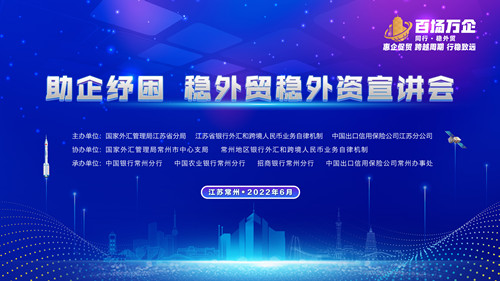 為貫徹全國穩(wěn)住經(jīng)濟大盤電視電話會議精神,落實《國務院辦公廳關于推動外貿保穩(wěn)提質的意見》的政策部署,由國家外匯管理局江蘇省分局(以下簡稱“江蘇省外匯局”)、江蘇省銀行外匯和跨境人民幣業(yè)務自律機制(以下簡稱“江蘇自律機制”)、中國出口信用保險公司江蘇分公司主辦的“助企紓困,穩(wěn)外貿穩(wěn)外資”宣講活動于6月23日在常州舉辦,該場宣講活動由國家外匯管理局常州市中心支局協(xié)辦、中國銀行江蘇省分行(以下簡稱“江蘇中行”)承辦,近百名客戶現(xiàn)場參會。