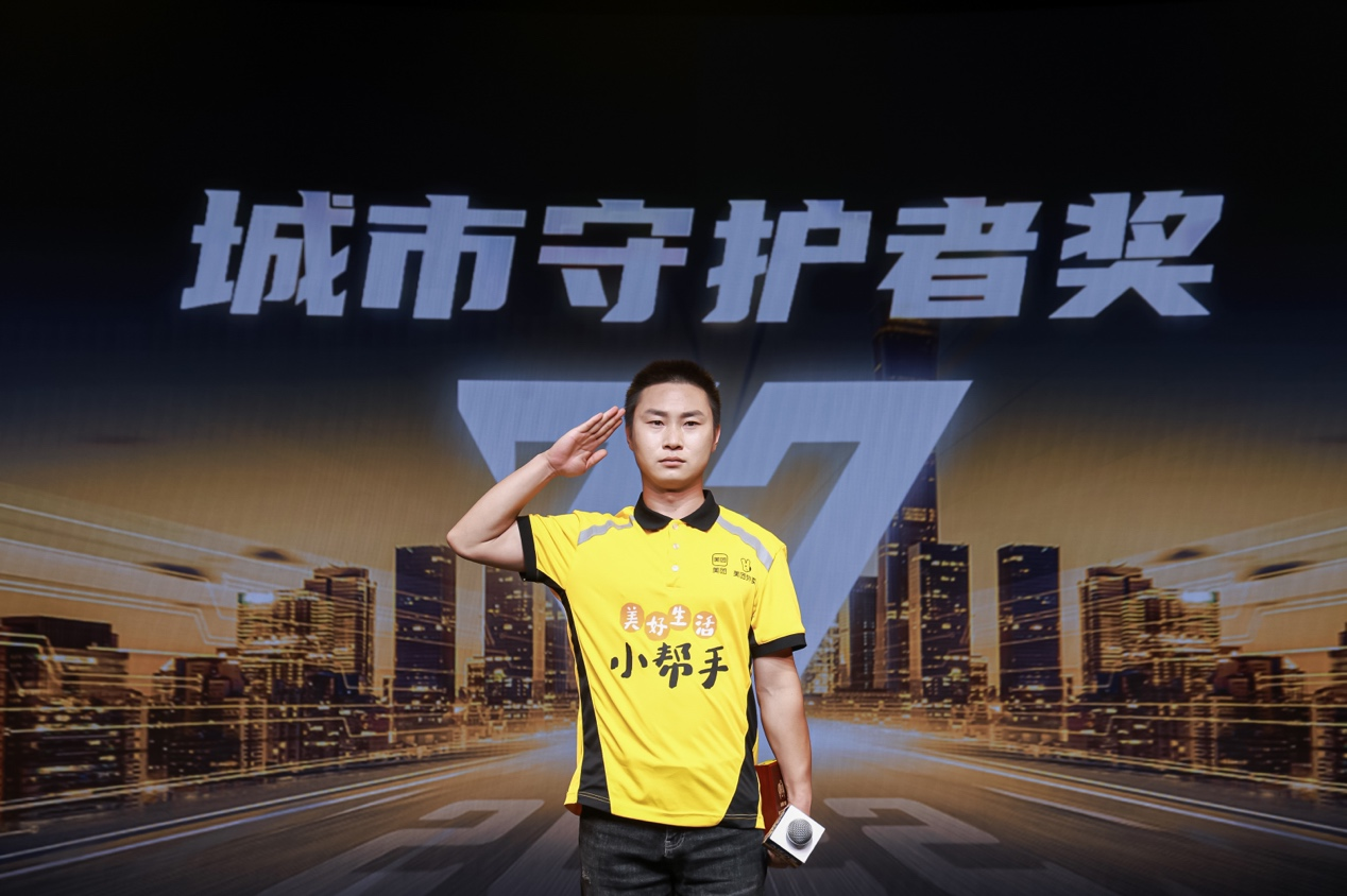 在現(xiàn)場,美團配送還為超過10萬名在各地疫情期間堅守崗位的騎手點亮“城市守護者”勛章,這項榮譽除了在騎手端App顯示,也在用戶端訂單詳情中的騎手主頁向騎手服務(wù)的用戶展示。北京疫情期間,望京模范站黨員騎手高豐參與了“內(nèi)循環(huán)”配送,他代表全國“城市守護者”發(fā)表感言道,“在我背后,還有無數(shù)穿行在北京大街小巷的騎手。不管是軍人,還是騎手,都在用自己的微小力量為人民服務(wù)。我堅信,一個訂單的完成,就是一次‘使命必達’?!?/p>