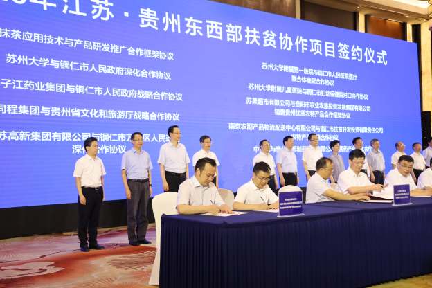 2020年8月,在江蘇·貴州東西部扶貧協(xié)作項(xiàng)目簽約儀式上,華潤(rùn)蘇果與貴陽(yáng)市農(nóng)業(yè)農(nóng)墾投資發(fā)展集團(tuán)簽署了《銷售貴州優(yōu)質(zhì)農(nóng)特產(chǎn)品合作框架協(xié)議》。華潤(rùn)蘇果為貴州優(yōu)質(zhì)農(nóng)特產(chǎn)品優(yōu)先提供銷售平臺(tái)、開(kāi)辟綠色通道,幫助貴州銷售包括果蔬、豬肉、牛肉、禽類、蛋類及地域特產(chǎn)(含國(guó)家地理標(biāo)志產(chǎn)品)等貨品;雙方將共同關(guān)注貴州省銅仁市、畢節(jié)市農(nóng)特產(chǎn)品引進(jìn)與銷售,支持江蘇省對(duì)口援建貧困地區(qū)農(nóng)特產(chǎn)品銷售工作;雙方建立專班團(tuán)隊(duì)對(duì)接,建立合作重大問(wèn)題和業(yè)務(wù)日常事務(wù)有效溝通機(jī)制,及時(shí)充分開(kāi)展業(yè)務(wù)交流與合作探討。