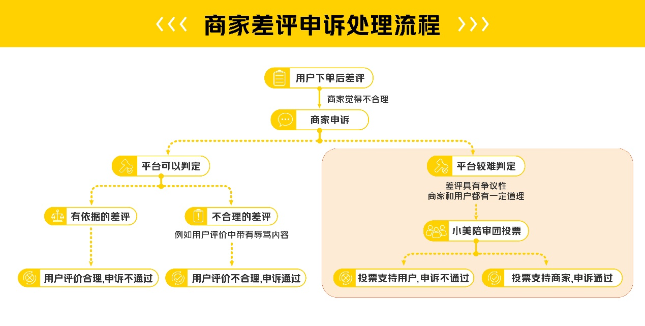 為了保障用戶合理評價(jià)權(quán)益、避免商家遭受不合理差評的影響,美團(tuán)外賣升級迭代產(chǎn)品功能,引入公眾評審機(jī)制——小美陪審團(tuán)。用戶和商家之間如果出現(xiàn)爭議差評,且雙方難以主動達(dá)成和解時(shí),熱心的社會公眾、用戶和商家都可以報(bào)名作為評審員,根據(jù)用戶和商家雙方提供的材料判斷,并對爭議差評進(jìn)行投票判定。