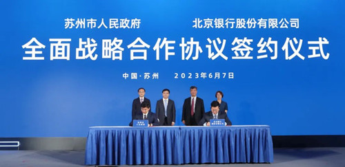 6月7日,蘇州市政府與北京銀行簽署全面戰(zhàn)略合作協(xié)議,北京銀行蘇州分行、數(shù)字人民幣創(chuàng)新實(shí)驗(yàn)室同步揭牌。江蘇省委常委、蘇州市委書記曹路寶,北京銀行黨委書記、董事長霍學(xué)文出席活動。