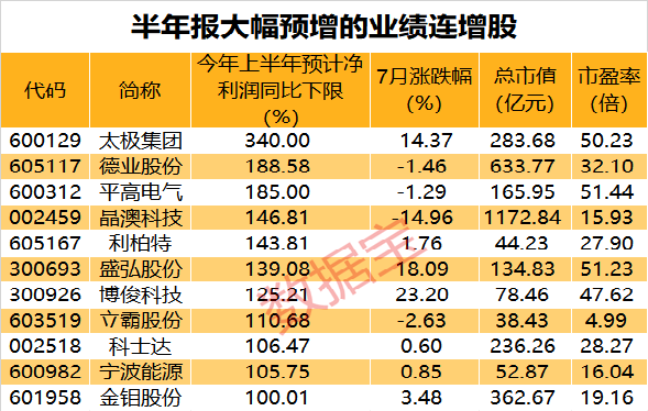 行情上來看,業(yè)績(jī)預(yù)計(jì)連增股本月以下跌為主,平均下跌1.23%,萬(wàn)澤股份、晶澳科技、康緣藥業(yè)、太極集團(tuán)7月以來跌幅均超過14%。