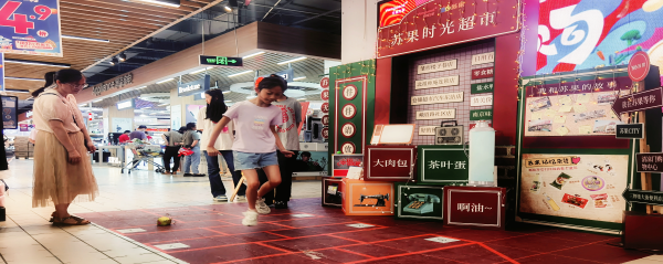 近日,“蘇果時(shí)光超市”主題打卡點(diǎn)亮相華潤(rùn)蘇果清涼門(mén)店,給大家?guī)?lái)一撥“回憶殺”?,F(xiàn)場(chǎng)可以看到,從大家耳熟能詳?shù)囊慌祥T(mén)店名婁子巷店、北祖師庵店,到上世紀(jì)80、90年代記憶深處的蘇果大肉包、北冰洋汽水、娃哈哈AD鈣奶。懷舊復(fù)古的雙卡收錄機(jī)、老式電視機(jī)、熱水瓶等經(jīng)典元素的組合,讓人仿佛穿越了“時(shí)光隧道”。在“我和蘇果的故事”模塊,消費(fèi)者的美好記憶化作便利貼定格在現(xiàn)場(chǎng),此外還有“丟沙包”“跳房子”等互動(dòng)抽獎(jiǎng)小游戲,進(jìn)一步強(qiáng)化了“時(shí)光”這個(gè)溫暖、美好的概念,帶來(lái)一撥濃濃的“回憶殺”,吸引不少消費(fèi)者拍照打卡。