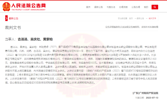 廣州知識(shí)產(chǎn)權(quán)法院稱(chēng),受理(2022)粵73民初6720號(hào)原告珠海格力電器訴被告奧克斯空調(diào)、寧波奧勝貿(mào)易有限公司、尚彬、劉娟、古湯湯、吳慶壯、黃家柏侵害商業(yè)秘密糾紛一案。