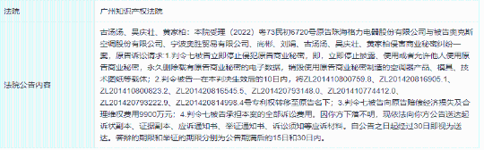 格力電器訴求判令被告將ZL201410800759.8、ZL201420816905.1、ZL201410800823.2、ZL201420816545.5、ZL201420793148.0、ZL201410774412.0、ZL201420793222.9、ZL201420814998.4號(hào)專(zhuān)利權(quán)轉(zhuǎn)移至原告名下;并且賠償原告9900萬(wàn)元。