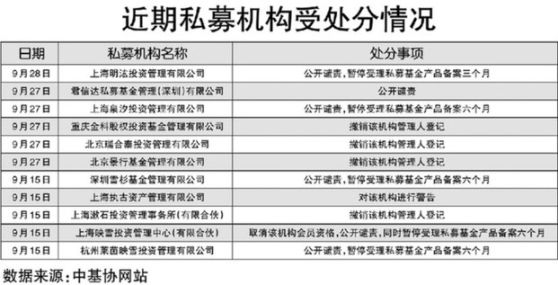 據(jù)《經(jīng)濟參考報》記者統(tǒng)計,今年8月初至9月底,中基協(xié)網(wǎng)站公布針對私募機構(gòu)的紀(jì)律處分決定書38張、針對相關(guān)個人的紀(jì)律處分決定書88張,合計超120張。業(yè)內(nèi)人士分析認(rèn)為,針對私募行業(yè)相關(guān)問題的處分力度較之前明顯加強。此前的6月至7月,中基協(xié)針對私募機構(gòu)的紀(jì)律處分決定書僅有3張,針對相關(guān)個人的紀(jì)律處分決定書也僅有4張。