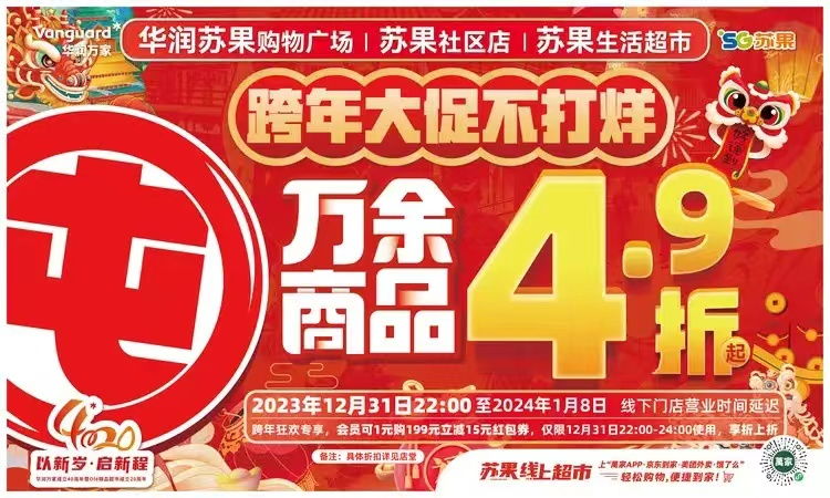 為拉動(dòng)節(jié)日消費(fèi),做旺元旦市場(chǎng),蘇果超市采取多重舉措集中發(fā)力,于2023年12月31日啟動(dòng)“龍年囤好物,省新在萬(wàn)家”萬(wàn)余商品4.9折起等系列促消費(fèi)活動(dòng),有效拉動(dòng)元旦消費(fèi)。據(jù)統(tǒng)計(jì),自活動(dòng)啟動(dòng)之日至1月4日,累計(jì)已有數(shù)百萬(wàn)人走進(jìn)蘇果各業(yè)態(tài)門(mén)店“買(mǎi)買(mǎi)買(mǎi)”,實(shí)現(xiàn)2024新年開(kāi)門(mén)紅。