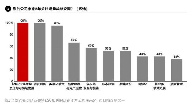 “多項(xiàng)調(diào)查顯示,ESG理念確實(shí)已經(jīng)深入人心。中國(guó)企業(yè)普遍重視ESG,2022哈佛商學(xué)院對(duì)中國(guó)代表型企業(yè)隨機(jī)抽樣調(diào)研表明,100%的受訪企業(yè)都將ESG作為公司未來5年的戰(zhàn)略議題,其重要程度已經(jīng)比肩研發(fā)創(chuàng)新、數(shù)字化轉(zhuǎn)型等議題?!崩钋嘣f。
