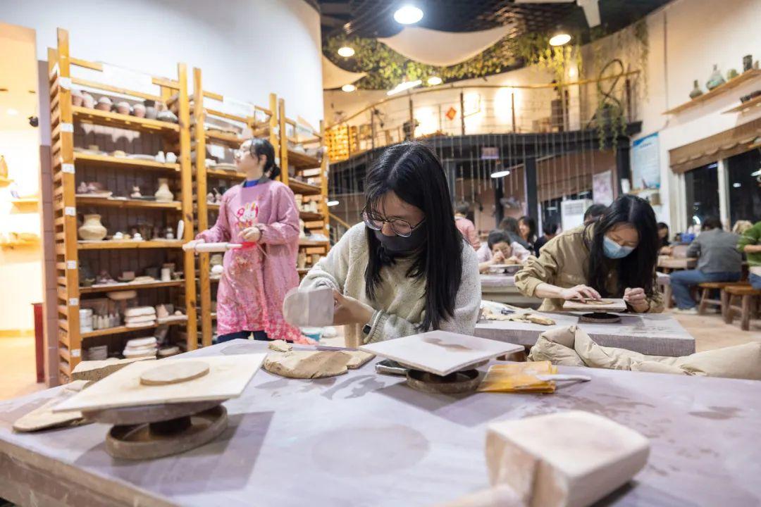 ▲4月1日,青年夜校學員在浙江省湖州市職業(yè)技術學院學習陶藝。CFP