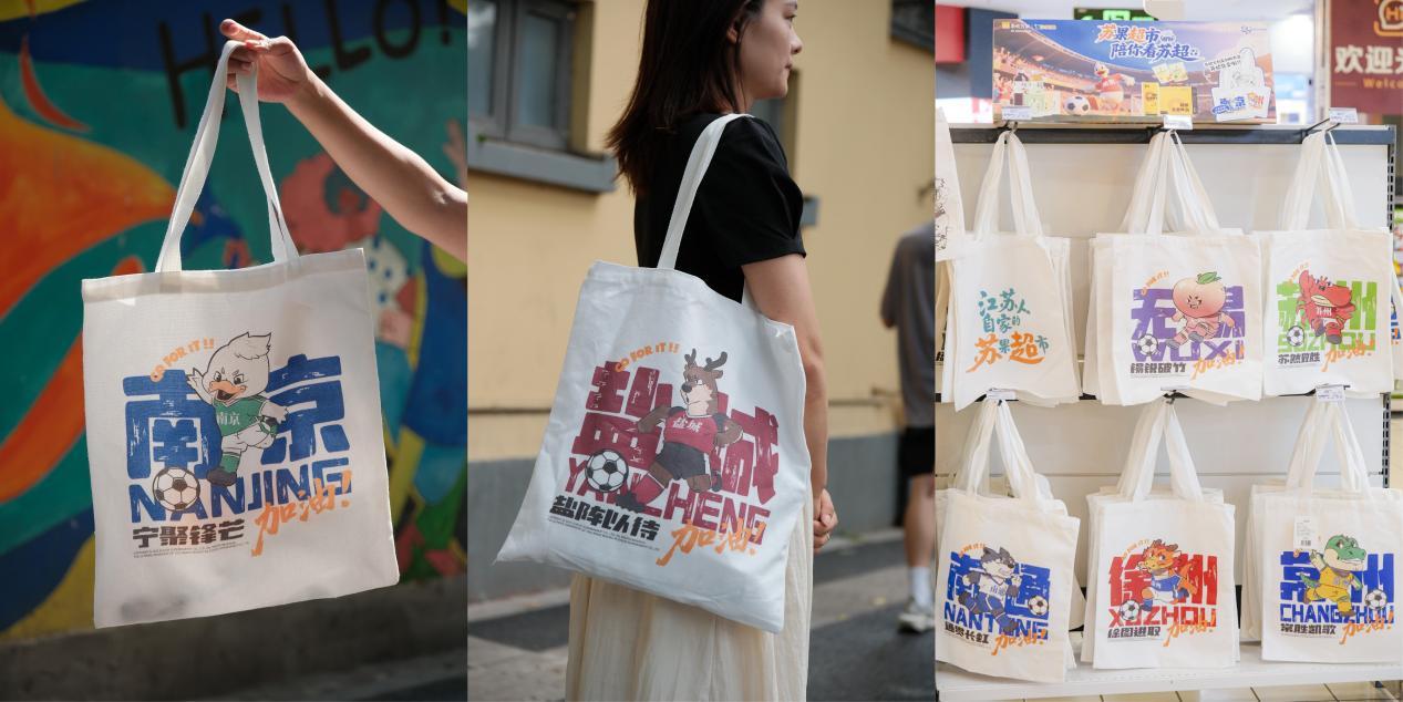 為致敬本土足球精神,蘇果超市特別設(shè)計(jì)推出限量版“蘇超文創(chuàng)購(gòu)物袋”。該系列巧妙融合“江蘇十三城”的代表性動(dòng)物IP與足球文化,用“南京,寧聚鋒芒”“鹽城,鹽陣以待”“無(wú)錫,錫銳破竹”等創(chuàng)意設(shè)計(jì),將城市的驕傲與對(duì)足球的熱愛印在袋上,一經(jīng)推出便引發(fā)球迷和市民的強(qiáng)烈共鳴與搶購(gòu)熱潮。