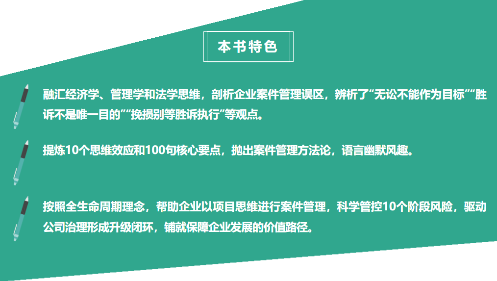 《企業(yè)案件管理:價值塑造與實(shí)現(xiàn)路徑》一書以深刻的筆觸,揭示了被個案法律事實(shí)所掩蓋的商事案件管理本質(zhì),聚焦企業(yè)高質(zhì)量發(fā)展這個根本目標(biāo),詮釋了全生命周期案件管理體系,值得眾多法務(wù)同仁一閱。