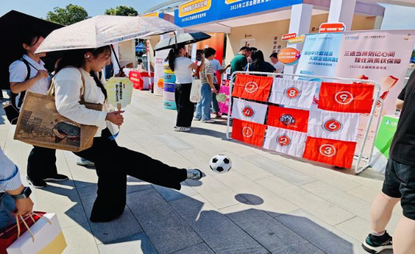 江蘇分公司在金融教育嘉年華中推出“九宮格踢足球+消保問答”環(huán)節(jié),市民邊玩邊學(xué),在運動中輕松掌握防范技巧。