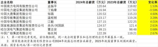其中,中國(guó)大唐集團(tuán)、中國(guó)華電集團(tuán)和中國(guó)華能集團(tuán)董事長(zhǎng)的總薪資漲幅領(lǐng)跑,同比2023年分別上漲4.60%、4.01%和3.28%。