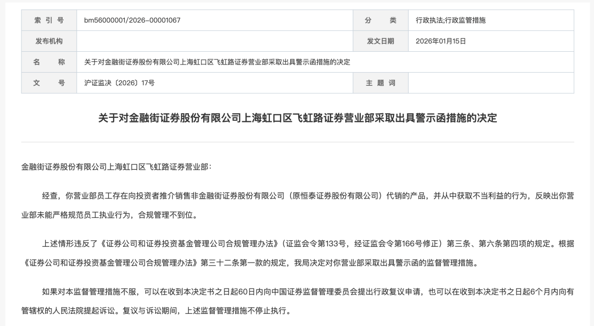 2025年12月31日,內(nèi)蒙古自治區(qū)證監(jiān)局、廣東省證監(jiān)局就金融街證券合規(guī)問題同步發(fā)布警示函。