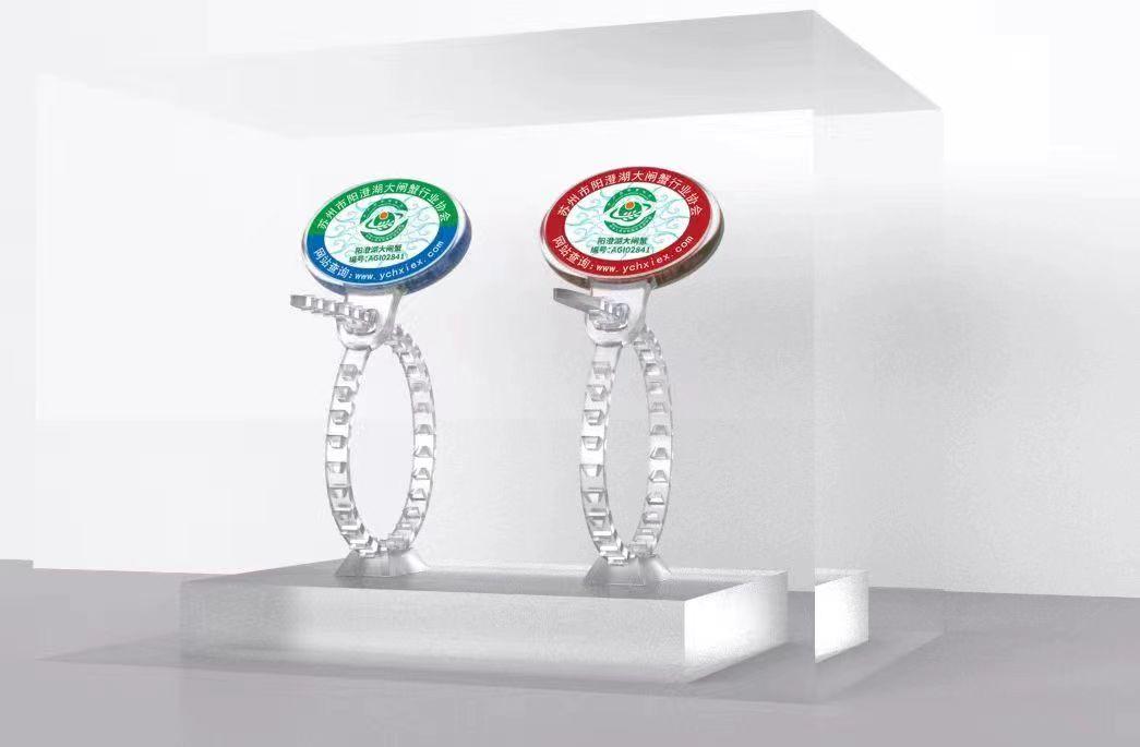 協(xié)會(huì)根據(jù)養(yǎng)殖戶的養(yǎng)殖面積,按照大閘蟹成熟度分批次發(fā)放防偽蟹扣。2022年版陽(yáng)澄湖大閘蟹農(nóng)產(chǎn)品地理標(biāo)志防偽專(zhuān)用標(biāo)識(shí)分為兩種,一種是深紅色,代表陽(yáng)澄湖湖區(qū)的大閘蟹;另一種是綠色加藍(lán)色,代表高標(biāo)準(zhǔn)養(yǎng)殖池塘的大閘蟹。通過(guò)顏色,消費(fèi)者很容易辨別蟹的產(chǎn)地。
