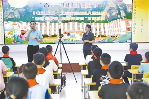 6月1日上午,中國法院網聯合北京市房山區(qū)人民法院走進房山區(qū)十渡中心小學,組織開展“普法進校園法治伴成長”VR直播活動。(王存輝 侯裕盛 )