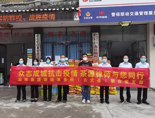 湖南茶源(古丈)律師事務(wù)所聯(lián)合黨支部黨員律師輪流值守在默戎苗寨景區(qū)卡點(diǎn),為默戎鎮(zhèn)捐贈(zèng)大米、糧油及其他生活物資。