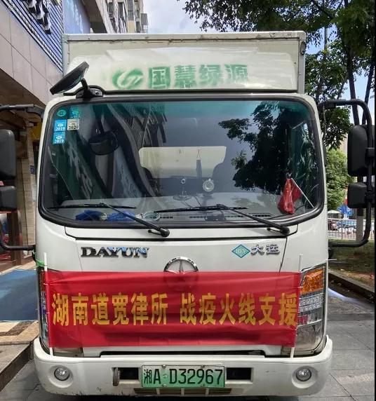 湖南道寬律師事務(wù)所黨支部組織律所全體黨員、律師及工作人員開展募捐活動(dòng),并將募集的3萬余元善款用于購買防疫物資,8月6日雇車將7000個(gè)口罩、1噸消毒液和酒精、1000對防疫手套等物資送往長沙縣黃花鎮(zhèn),支持村民抗擊疫情。