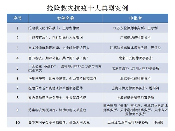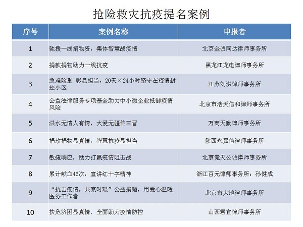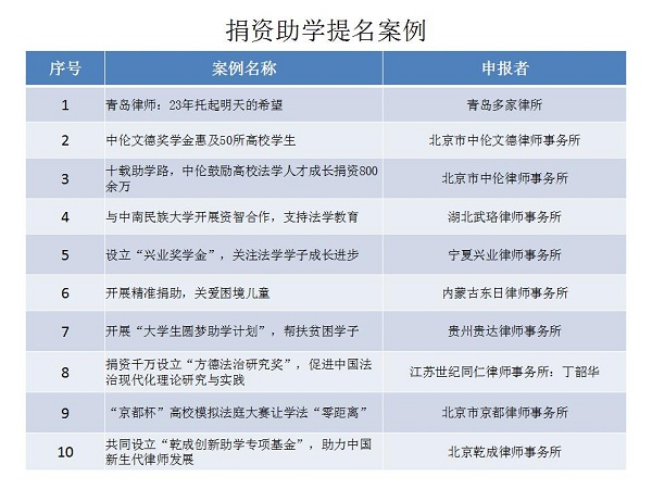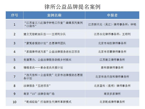 結(jié)合公眾投票和專家評審,十大律師公益類別最終產(chǎn)生了一百個典型案例,一百個提名案例。