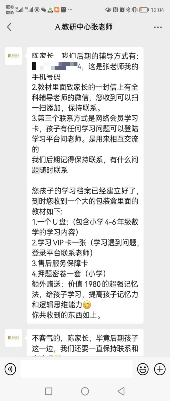 隗卓然指出,這類消費(fèi)陷阱一般是虛構(gòu)聊天記錄展示出單量,利用消費(fèi)者急迫、從眾的心理和信息差來催促消費(fèi)者下單,比如銷售人員提供客戶孩子學(xué)習(xí)成績(jī)提升的各種截圖信息再結(jié)合“訂購(gòu)一套知學(xué)通教材,孩子學(xué)習(xí)生涯所有的課外輔導(dǎo)資料都不用買”的“一勞永逸”型話術(shù),令家長(zhǎng)們沖動(dòng)付款。