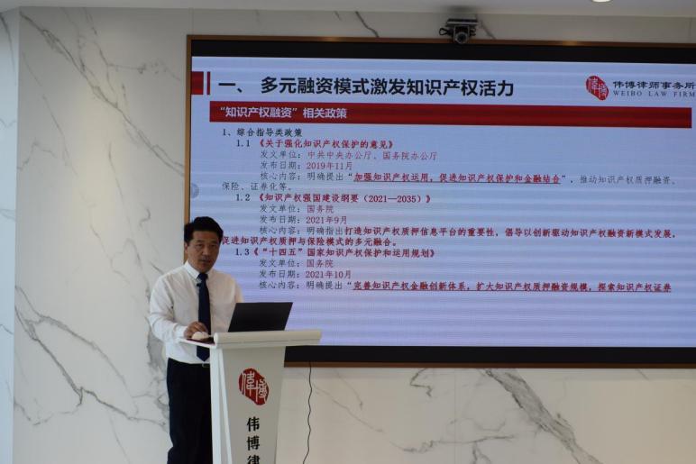 偉博律所孟凡臣律師以《知識產(chǎn)權(quán)融資司法實務(wù)》為題,闡釋多元融資模式對知識產(chǎn)權(quán)活力的激發(fā),結(jié)合實際案例分享了知識產(chǎn)權(quán)價值的評估和侵權(quán)賠償數(shù)額的確定,并提出司法實踐中知識產(chǎn)權(quán)侵權(quán)賠償數(shù)額確定與價值評估之間互為參考的可能性。