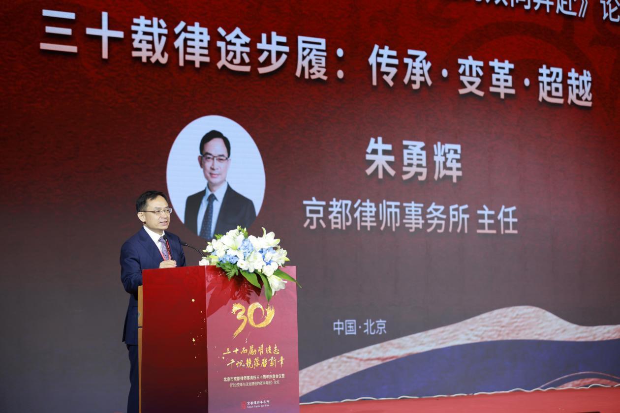 京都律師事務(wù)所主任朱勇輝在致辭中表示,在京都所三十歲生日這個特別的日子里,與會人員共同關(guān)注中國律師的成長,共同關(guān)心中國律師行業(yè)的發(fā)展,共同關(guān)切中國法治的進步。希望在探討中國律所四十載旅途步履,聚焦中國律師行業(yè)變革的同時,能夠總結(jié)中國律所發(fā)展的經(jīng)驗與路徑,讓律師為國家法治建設(shè)作出更大貢獻。