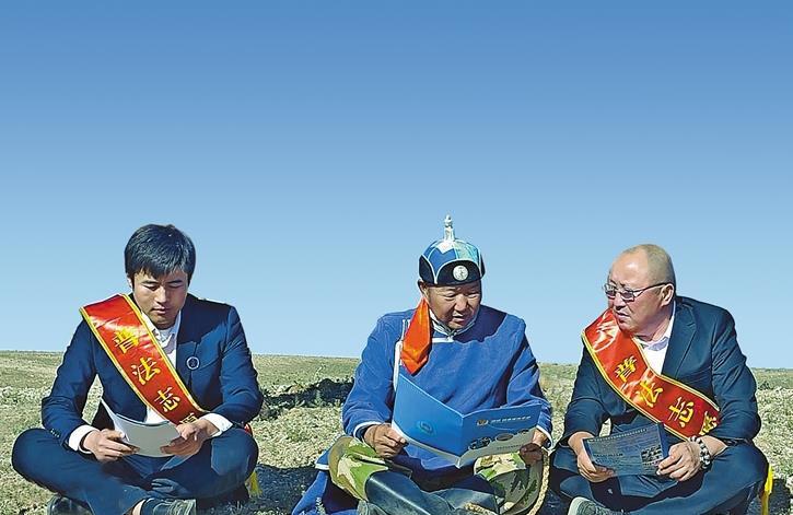 李成偉律師(左一)深入牧區(qū)開(kāi)展普法宣傳。