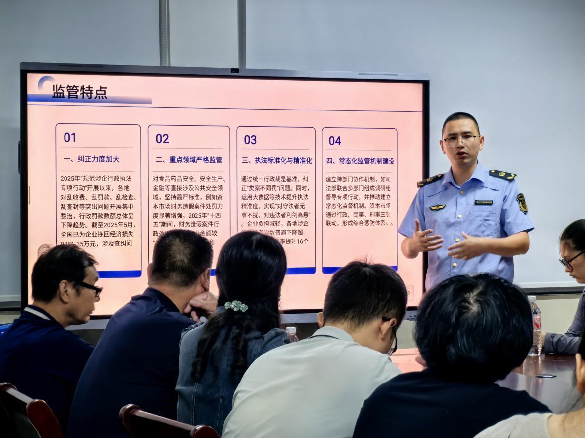 在面向鎮(zhèn)商會成員的專題講座中,王金華以《涉企處罰風險全解析》為主題,深入剖析了企業(yè)在安全生產、消防管理、環(huán)境保護、知識產權、產品質量、稅務、建設項目等八大“高危雷區(qū)”的常見風險點,并通過某公司因未按規(guī)定進行安全培訓教育導致事故發(fā)生被重罰、某企業(yè)因危廢管理不規(guī)范面臨高額罰款和整改壓力等典型案例,對現(xiàn)場企業(yè)進行警示教育與宣傳引導。