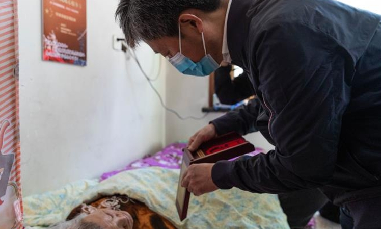 84歲的徐敏老人17歲應征入伍,參加過抗美援朝戰(zhàn)役。他雖然年事已高,但仍然精神抖擻、聲音洪亮。高立春一行來到徐敏家中,與他親切交談,并送上米、面、油、牛奶等慰問品。高立春對老人投身抗美援朝、經歷浴血奮戰(zhàn)的大無畏精神表示敬意,感謝他們?yōu)樾轮袊鞒龅呢暙I,并親自為他佩戴上“中國人民志愿軍抗美援朝出國作戰(zhàn)70周年”紀念章。同時,高立春還要求相關部門和工作人員要時刻關心、照顧好老人,及時主動地幫助老人解決生活困難,并叮囑老人有任何困難第一時間找退役軍人服務中心這個“娘家人”。