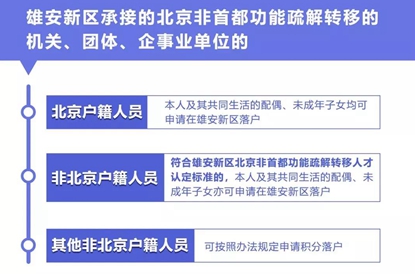 答:除雄安新區(qū)承接的北京籍轉(zhuǎn)移人口、引進的人才、原籍雄安新區(qū)的大中專院校學生、直系親屬投靠且按相關(guān)規(guī)定可在雄安新區(qū)直接辦理落戶的人員外,在雄安新區(qū)合法穩(wěn)定就業(yè)并居住的非雄安新區(qū)戶籍人員,符合本辦法規(guī)定條件申請積分落戶的,適用本辦法。