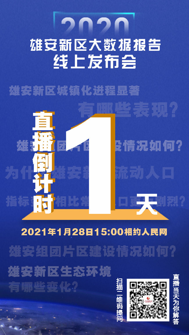 人民網(wǎng)雄安1月27日電 明天,將有關(guān)于雄安的重要消息發(fā)布?!拔磥碇?拔節(jié)生長:大數(shù)據(jù)見證雄安之變”雄安新區(qū)2020年大數(shù)據(jù)報(bào)告線上發(fā)布會(huì)定于28日下午3點(diǎn),在人民網(wǎng)演播廳舉行。發(fā)布會(huì)上,百度商業(yè)智能實(shí)驗(yàn)室專家將重點(diǎn)從生態(tài)環(huán)境變化、基建成果、產(chǎn)業(yè)發(fā)展、人口變化和熱門關(guān)注度等角度對雄安新區(qū)2020年大數(shù)據(jù)報(bào)告進(jìn)行解讀,用數(shù)據(jù)幫助你客觀、全面了解雄安新區(qū)過去一年的建設(shè)發(fā)展內(nèi)容和成果。屆時(shí),人民網(wǎng)將全程直播,敬請關(guān)注!