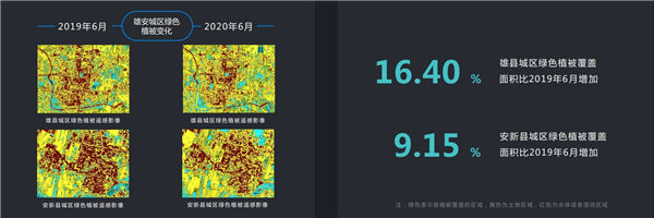 先植綠、后建城,是雄安新區(qū)建設(shè)的新理念。過去一年,雄安新區(qū)區(qū)域自然地表植被覆蓋不斷增加?!秷?bào)告》顯示,2020年6月,雄安新區(qū)的東部已經(jīng)有較多的自然地表植被覆蓋,其中,大清河片區(qū)2020年的綠色植被覆蓋面積較2018年增加了20.97%。