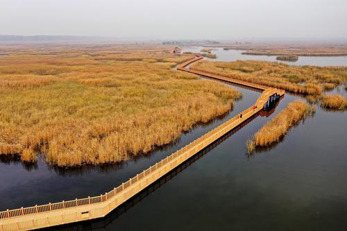2020年11月5日拍攝的白洋淀風光(無人機照片)。深秋時節(jié),“華北明珠”白洋淀水面如鏡,蘆葦金黃。近年來,通過有效治理,白洋淀水生態(tài)環(huán)境持續(xù)改善。新華社記者牟宇 攝