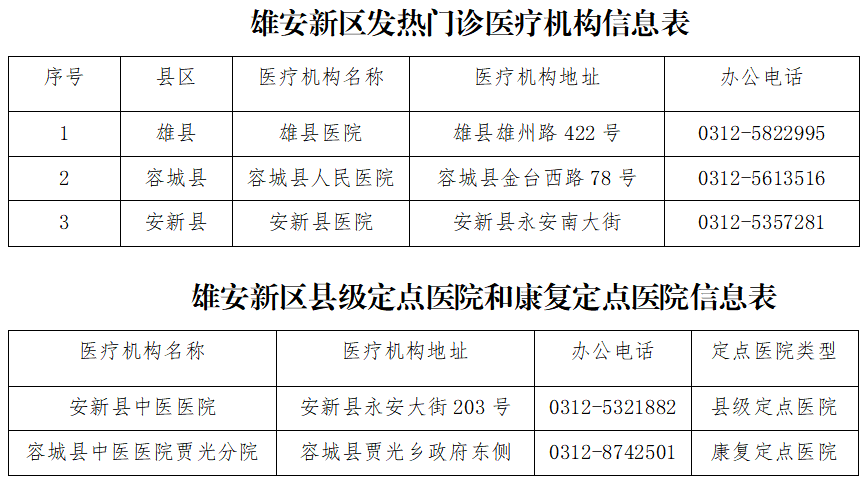 雄安新區(qū)發(fā)熱門診、定點(diǎn)醫(yī)院、康復(fù)醫(yī)院信息公示