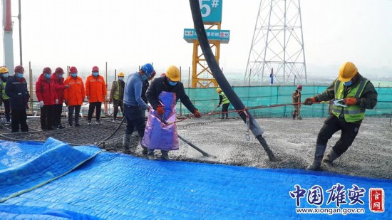 建設(shè)單位中國雄安集團(tuán)生態(tài)建設(shè)公司把該項(xiàng)目作為一號(hào)工程,在新區(qū)黨工委、管委會(huì)和雄安集團(tuán)領(lǐng)導(dǎo)下,認(rèn)真貫徹落實(shí)河北省委、省政府決策部署,全力保質(zhì)量、保進(jìn)度、保安全、保成本、保廉潔,堅(jiān)決完成建設(shè)施工任務(wù)。施工單位北京城建集團(tuán)于2020年12月4日收到中標(biāo)通知書后,克服了時(shí)間緊、任務(wù)重以及冬季施工難度大等困難,發(fā)揚(yáng)鐵軍精神,僅用2個(gè)多月時(shí)間就完成春節(jié)前主體結(jié)構(gòu)封頂?shù)募榷ㄈ蝿?wù)。
