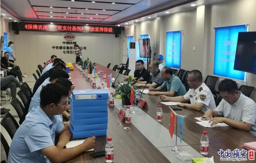 中國雄安官網(wǎng)7月4日電 為進一步推動《保障農(nóng)民工工資支付條例》宣傳貫徹工作,營造和諧勞動用工關(guān)系的氛圍,按照《貫徹實施<保障農(nóng)民工工資支付條例>執(zhí)法宣傳培訓(xùn)活動方案》部署,6月30日,雄安新區(qū)綜合執(zhí)法局和容城縣勞動保障監(jiān)察大隊前往容西片區(qū)C單元安置房及配套設(shè)施項目C1標(biāo)段中鐵十二局集團項目部、C3標(biāo)段中鐵建設(shè)集團項目部,聯(lián)合開展了執(zhí)法宣傳進工地活動。