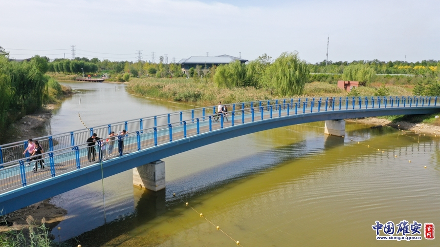 游客在園內(nèi)橋上駐足觀景。中國雄安官網(wǎng)毛鶴然 攝