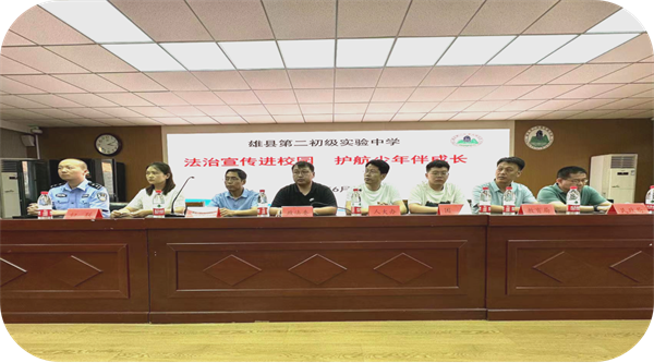 按照“八五”普法工作要求,河北省保定市雄縣扎實(shí)開展“關(guān)愛花朵計劃”三年行動,持續(xù)加大“法治進(jìn)校園”普法宣傳教育力度,厚植法治土壤,“護(hù)苗”茁壯成長,不斷增強(qiáng)在校學(xué)生的法治觀念和自我保護(hù)能力。2024年6月5日,雄縣縣委政法委聯(lián)合縣人大辦、縣政協(xié)辦、團(tuán)縣委、縣婦聯(lián)、縣公安局、縣教育局、縣民政局等部門在雄縣第二初級實(shí)驗(yàn)中學(xué)開展“法治宣傳進(jìn)校園,護(hù)航少年伴成長”普法宣傳。活動由校長鄭通同志主持,有關(guān)部門領(lǐng)導(dǎo)出席并講話,部分老師、學(xué)生代表參加了活動。