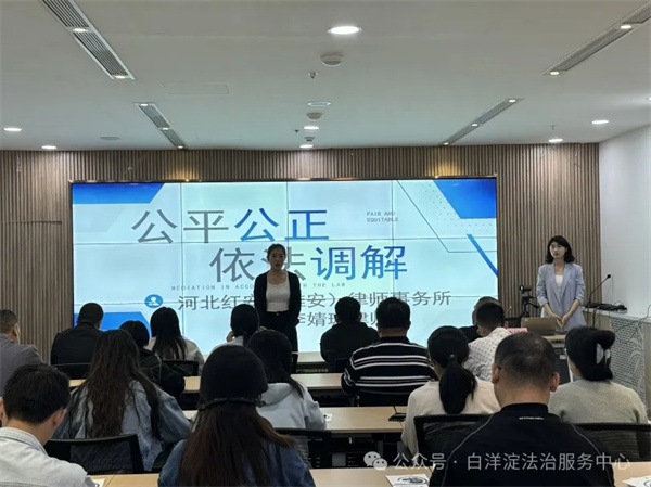 為進(jìn)一步增強(qiáng)容東片區(qū)社會(huì)治理法治化水平,提升社區(qū)骨干調(diào)解能力和業(yè)務(wù)能力,河北雄安新區(qū)白洋淀法治服務(wù)中心在容東片區(qū)開展了人民調(diào)解技能培訓(xùn),邀請(qǐng)河北紅安(雄安)律師事務(wù)所李婧璇律師普法授課。