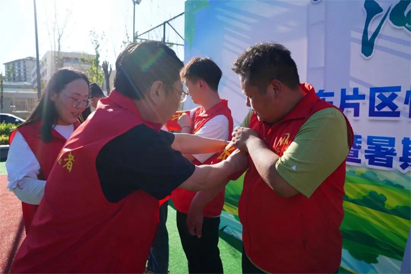 活動現(xiàn)場,悅容小學志愿者代表朱皓萱宣讀《“珍愛生命,預防溺水”倡議書》,與會領導為各組團護河行動志愿服務隊護河長佩戴了袖章,容東管委會相關負責同志宣布暑期“護河行動”活動正式啟動。