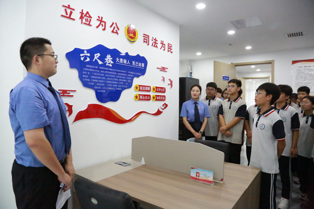 “同學(xué)們,高鐵樞紐片區(qū)檢察服務(wù)中心以服務(wù)征遷群眾為宗旨,它是集家庭教育指導(dǎo)、心理疏導(dǎo)、回訪幫教、矛盾調(diào)處、法治宣傳等為一體的綜合服務(wù)中心……現(xiàn)在大家看到的是我們專門為未成年人設(shè)置的家庭教育指導(dǎo)室和心理疏導(dǎo)室,在這里可以為未成年人及親屬提供全方位的家庭教育指導(dǎo)和心理疏導(dǎo)、心理測評、行為矯正等法律服務(wù)”。在干警講解下,學(xué)生們了解了檢察服務(wù)中心的功能作用,感受到檢察機關(guān)做實未成年人保護工作的司法溫度。