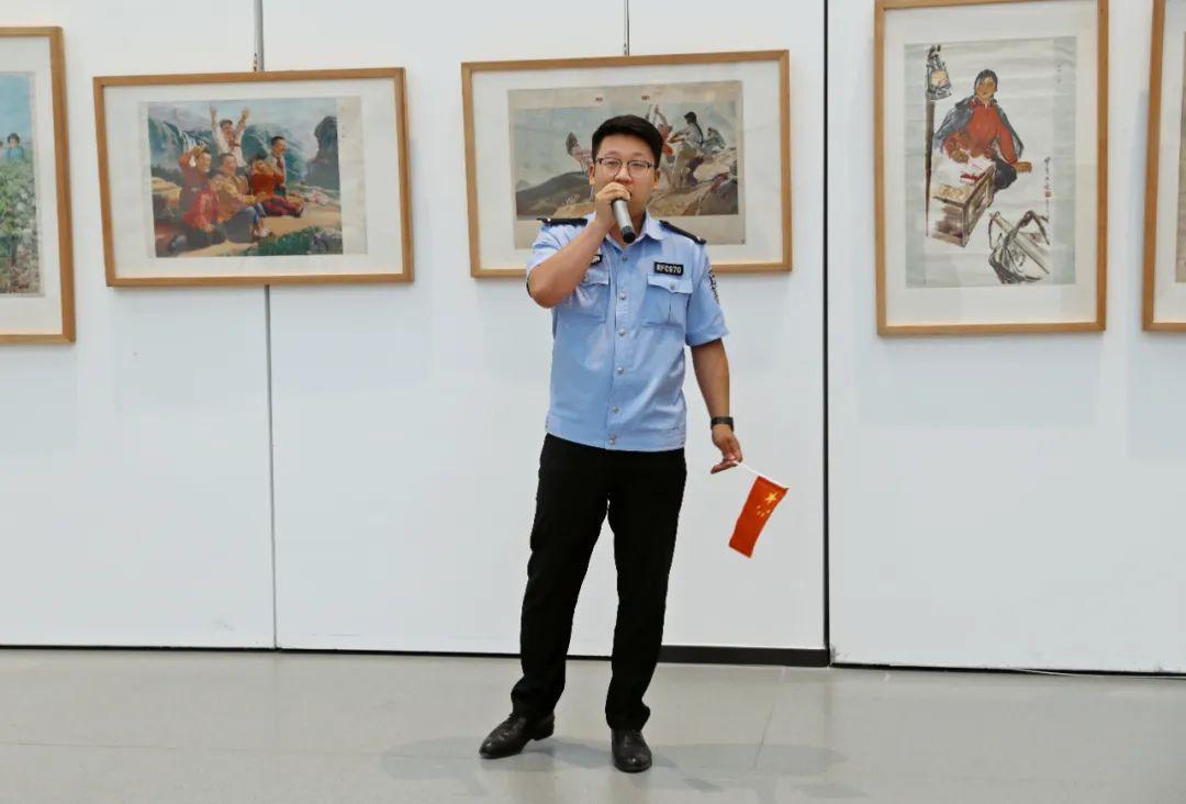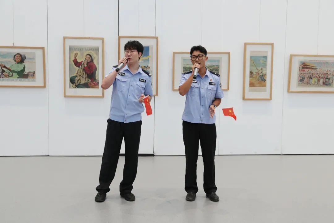 此次展覽主要展示反映新中國成立以來一系列重大歷史事件宣傳畫、年畫,以及描繪新區(qū)建設(shè)發(fā)展的部分美術(shù)作品,百余幅作品如同歷史畫卷般在大家眼前徐徐展開。民輔警穿梭其間,仿佛穿越時(shí)空隧道,親眼見證了新中國從百廢待興到繁榮昌盛的壯麗圖景,一筆一劃,都仿佛是祖國前進(jìn)的鏗鏘足音,在大家心中激蕩起了強(qiáng)烈的共鳴。大家或駐足凝視,或低語交流,分享著各自對新中國發(fā)展歷程的感慨與認(rèn)識。
