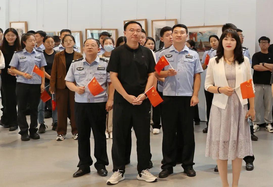 觀展結(jié)束后,伴隨著“我和我的祖國,一刻也不能分割。無論我走到哪里,都流出一首贊歌……”歌聲的響起,參展人員移步展廳中央,雄安公安文聯(lián)的表演者們伴隨著莊嚴(yán)激昂的旋律依次從人群中走出,《我和我的祖國》《追尋》《多情的土地》《我愛你中國》,一首首振奮人心的歌曲,唱出了慶祝新中國75周年華誕的喜悅,唱出了對祖國的自豪與驕傲。