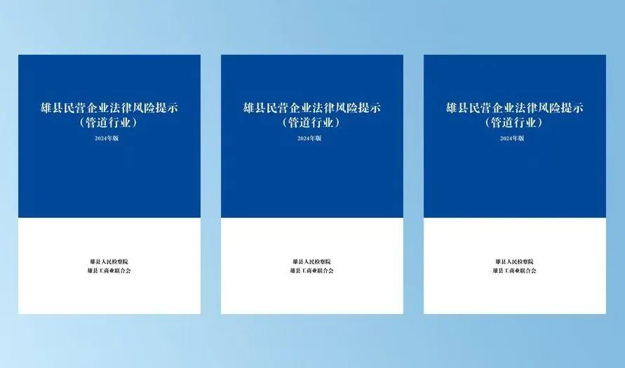 1月10日,雄縣管道行業(yè)協(xié)會(huì)2025年年會(huì)召開(kāi)。會(huì)上,雄縣人民檢察院會(huì)同雄縣工商業(yè)聯(lián)合會(huì)正式發(fā)布《雄縣民營(yíng)企業(yè)法律風(fēng)險(xiǎn)提示(管道行業(yè))2024版》(以下簡(jiǎn)稱(chēng)《提示》)。