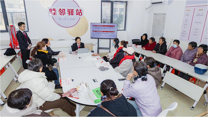 作為連接司法服務(wù)“最后一公里”的創(chuàng)新實(shí)踐,該法庭構(gòu)建起“三級(jí)聯(lián)動(dòng)”服務(wù)體系:對(duì)上對(duì)接片區(qū)管委會(huì),對(duì)中協(xié)同社區(qū)黨總支,對(duì)下融入小區(qū)網(wǎng)格,形成了“縱向貫通、橫向聯(lián)動(dòng)”的治理網(wǎng)絡(luò)。