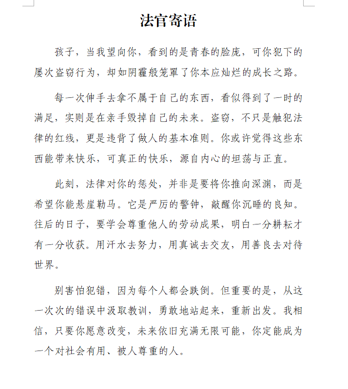 判決送達(dá)并生效后,被告人坦然接受判決結(jié)果。該院隨即對被告人進(jìn)行了回訪,對案卷進(jìn)行了封存,并與孩子及家長約定好下一次的回訪見面時(shí)間。