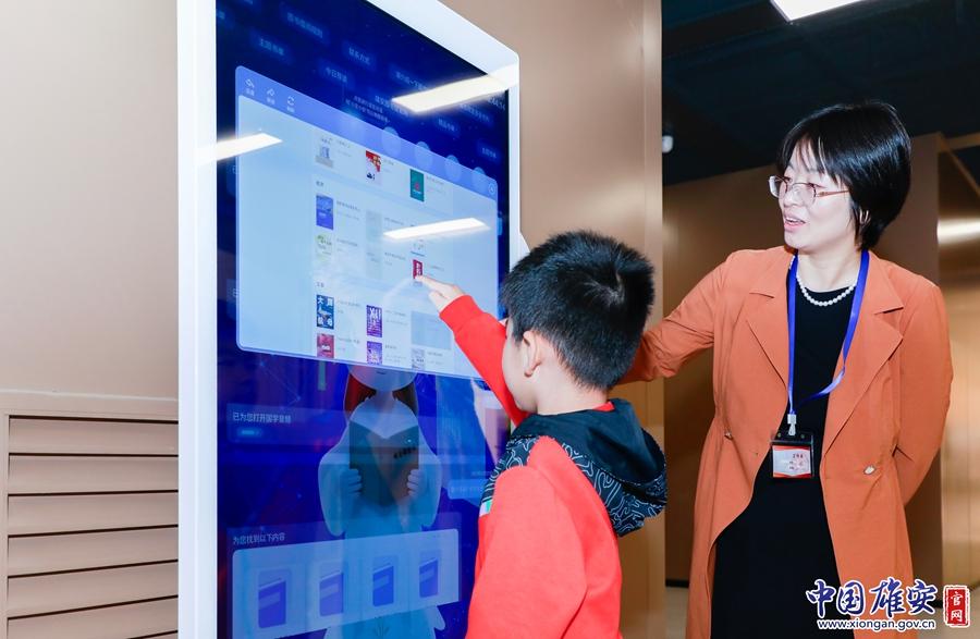 讀者在體驗(yàn)圖書館內(nèi)的智能設(shè)備。中國(guó)雄安官網(wǎng)發(fā)