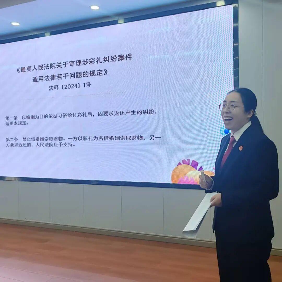 活動(dòng)現(xiàn)場(chǎng),干警聚焦兩大主題,以通俗易懂的方式開展宣講。在“弘揚(yáng)婚嫁新風(fēng)”環(huán)節(jié),法官以《最高人民法院關(guān)于審理涉彩禮糾紛案件適用法律若干問(wèn)題的規(guī)定》為背景,結(jié)合三個(gè)典型案例,深入淺出地講解了群眾關(guān)心的彩禮問(wèn)題,著力宣傳民法典關(guān)于“禁止借婚姻索取財(cái)物”的規(guī)定,引導(dǎo)村民樹立正確的婚戀觀,共同倡導(dǎo)文明鄉(xiāng)風(fēng)建設(shè)。