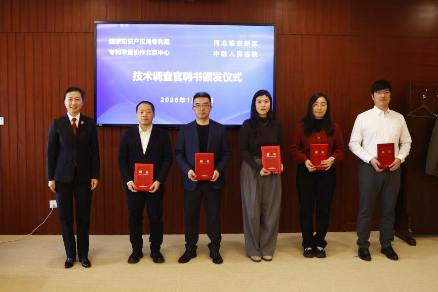 李靜靜在發(fā)言時指出,雄安中院牢記“打造貫徹落實新發(fā)展理念的創(chuàng)新示范區(qū)”的初心使命,充分發(fā)揮司法審判職能,以高質(zhì)量的知識產(chǎn)權(quán)審判護航雄安新區(qū)建設(shè)創(chuàng)新之城。雄安知識產(chǎn)權(quán)法庭始終致力于健全審判機制、提升專業(yè)能力、深化協(xié)同保護,不斷加強知識產(chǎn)權(quán)專業(yè)化審判隊伍建設(shè)。本次受聘的技術(shù)調(diào)查官涵蓋機械、電學(xué)、通信、醫(yī)藥生物、化學(xué)、光電、材料和外觀設(shè)計八大領(lǐng)域,他們的加入進一步增強了雄安中院知識產(chǎn)權(quán)專業(yè)化力量,為進一步打造“技術(shù)調(diào)查+技術(shù)咨詢+技術(shù)鑒定+專家輔助+專家陪審”“五位一體”的技術(shù)事實查明機制,為切實提升技術(shù)類案件審判質(zhì)效提供有力支持。她希望,新任技術(shù)調(diào)查官要進一步提高政治站位,恪守客觀公正立場,在未來的履職中發(fā)揮專長、貢獻力量,為雄安知識產(chǎn)權(quán)審判提供堅實支撐。