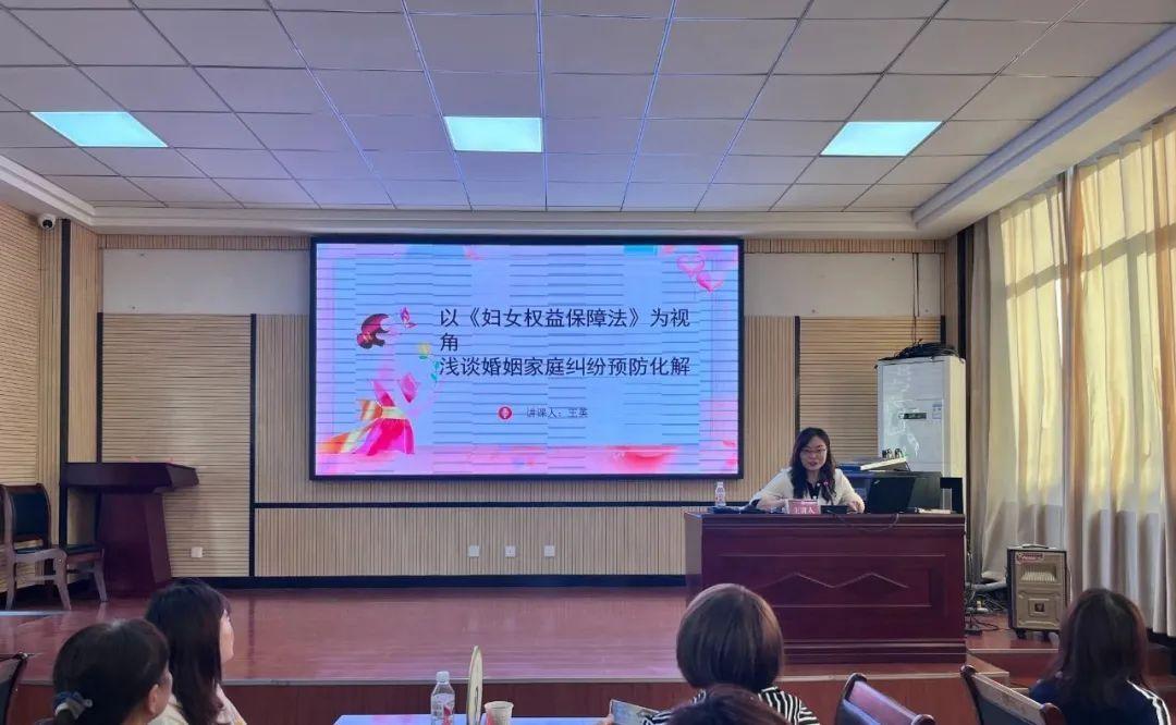 王英以《以〈婦女權(quán)益保障法〉為視角,淺談婚姻家庭糾紛預防化解》為主題,結(jié)合自身工作經(jīng)驗和審判實踐中的典型案例,用通俗易懂的語言講解婦女權(quán)益保護相關(guān)法律法規(guī),增強婦聯(lián)干部的法律意識,進一步提高婦聯(lián)干部運用法治思維和法治方式維護合法權(quán)益、化解矛盾糾紛的能力和水平。